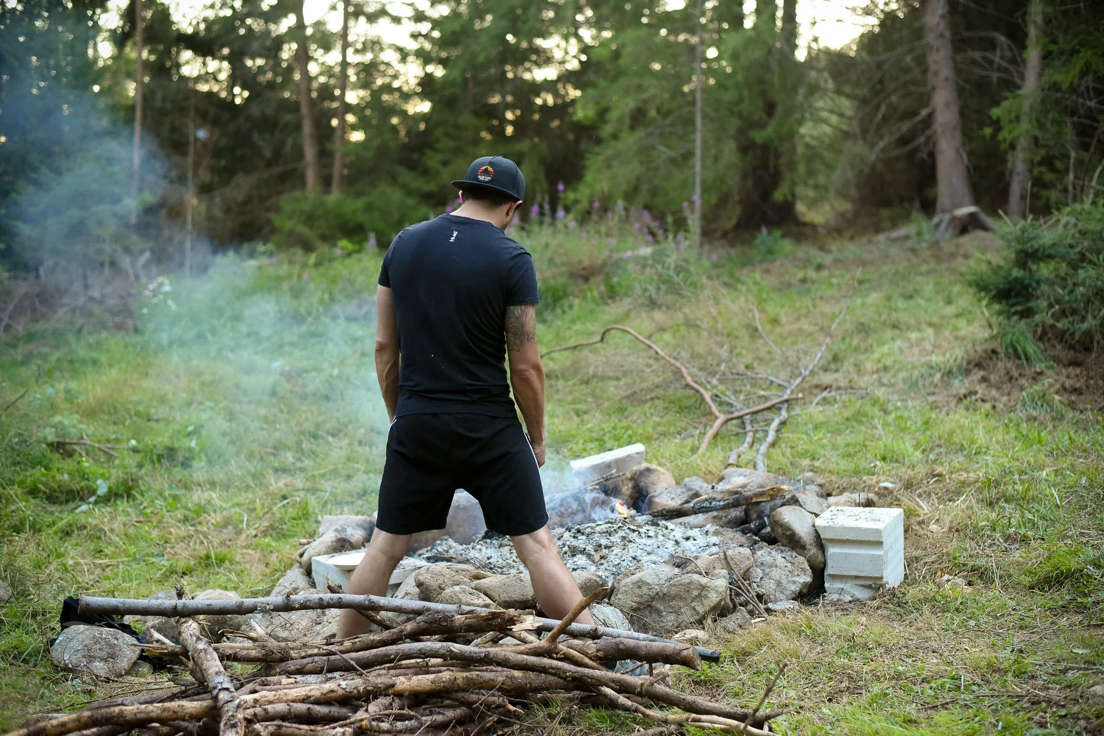 We have been staying in the cabin now for weekends and have been just clearing out and buring all th excess unusable wood. There was a lot of builders wood that needed burning and also we have started to clear the forest nearby that has tons of chopped down dried out branches. The ground still needs levelling after the electricity cables have been laid and Andrew has been removing as many boulders from the terrain as possible.